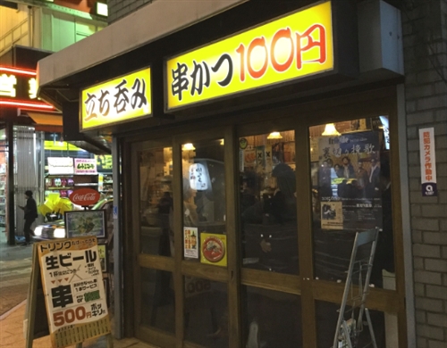 さっと飲むには最適のドンキホーテ向かいにある串揚げ立ち飲みバーです。
